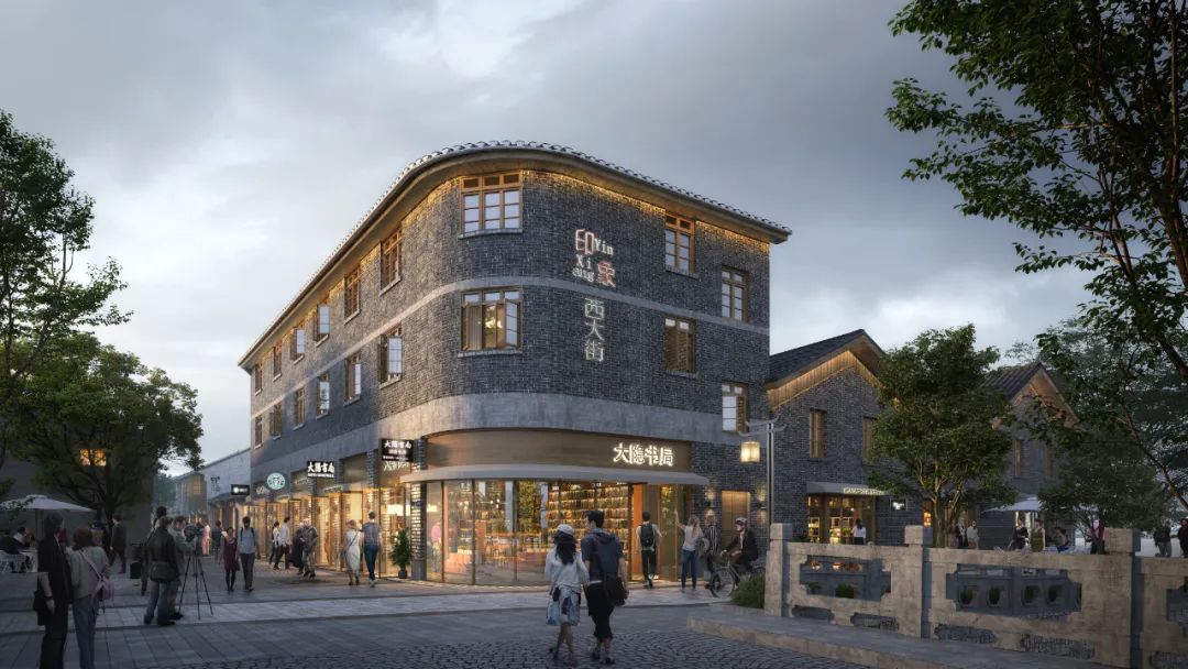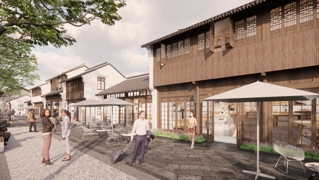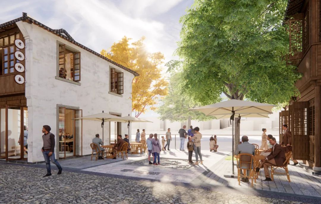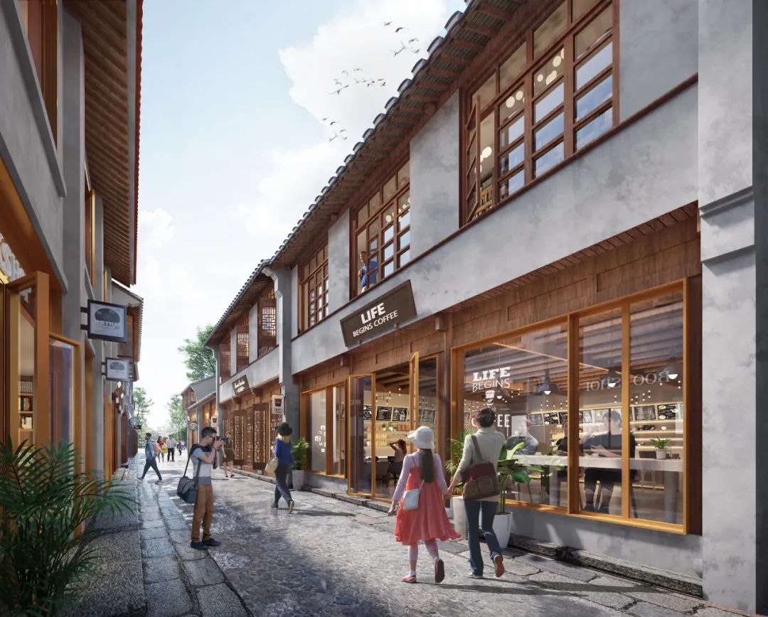 整体延续青砖、白墙为主的近现代风格,保持历史风貌的同时,通过底层商业更新等方式提升东入口形象。