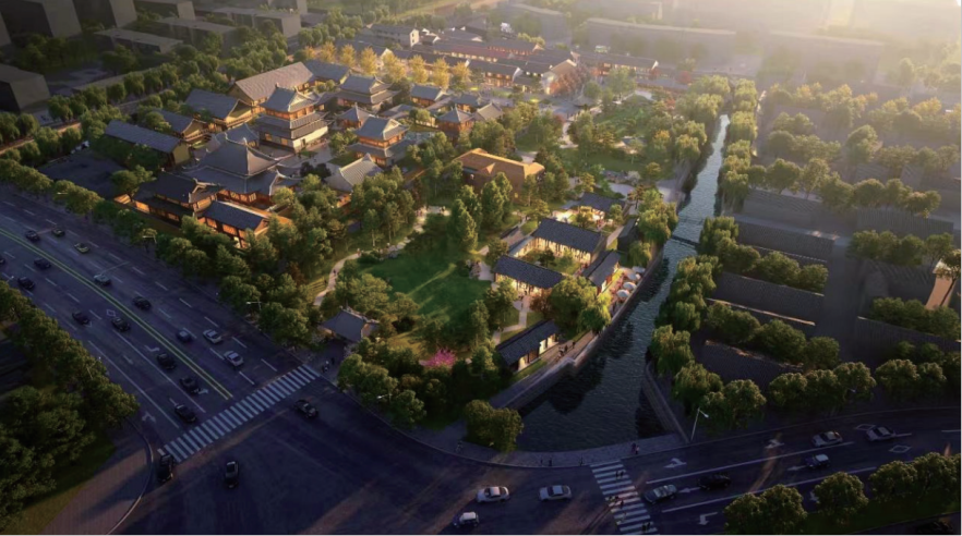 香花桥旧址所在,将采用传统石材、浮雕等镌刻历史信息的方式,恢复古韵氛围的传统桥头空间;结合功能业态设置外摆,提升节点空间商业活力。